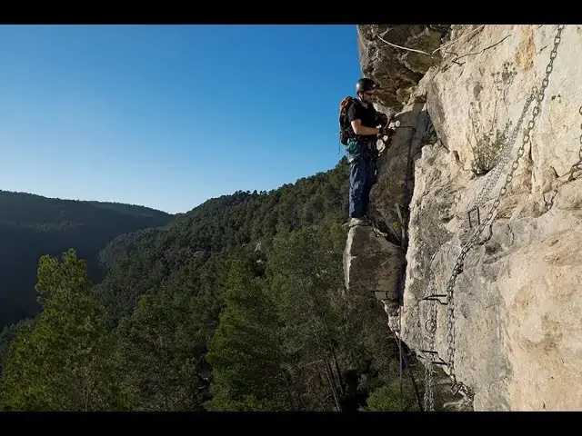 La Cinglera del Resistent es una de las vías ferratas más desafiantes en Cataluña. Situada en Castellbell i el Vilar, Manresa, te sumergirás en su famoso techo desplomado con 7 grapas, un tramo que te hará vibrar.